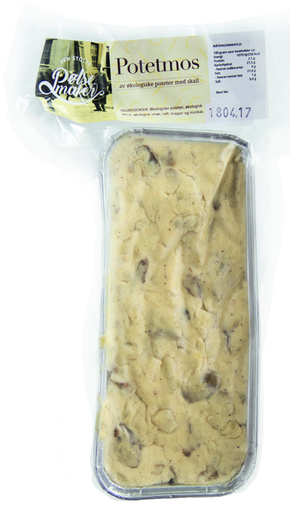 Hjemmelaget Potetmos Kr 69,-/stk Tilbake til tilbehør Ingredienser: Poteter, MELK, SMØR, salt, pepper og muskat Næringsinnhold:100 gr. vare inneholder ca.: Energi 1079 kj/258 kcal Protein 2,1 g Karbohydrater 21,5 g - hvorav suukkerarter 0 g Fett 21,4 g - hvorav mettet fett 1 g Salt 0,4 g Hjem Produkter Aktuelt Historien Kontakt Følg oss på Facebook