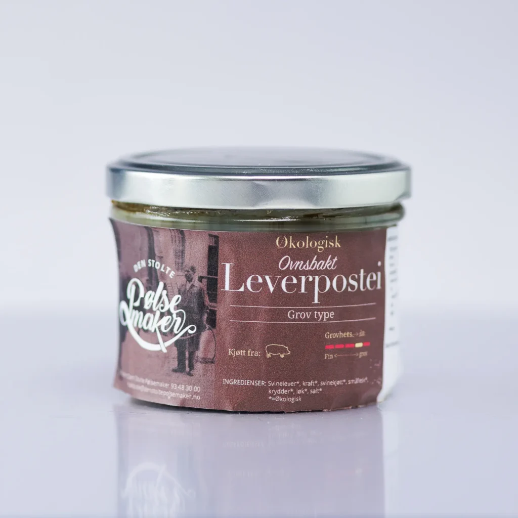 Vår ovnsbakte grove leverpostei, er en paté med lever og mye kjøtt. Den er tilsatt en spesiell krydderblanding som gir den en fin og spennende smak.